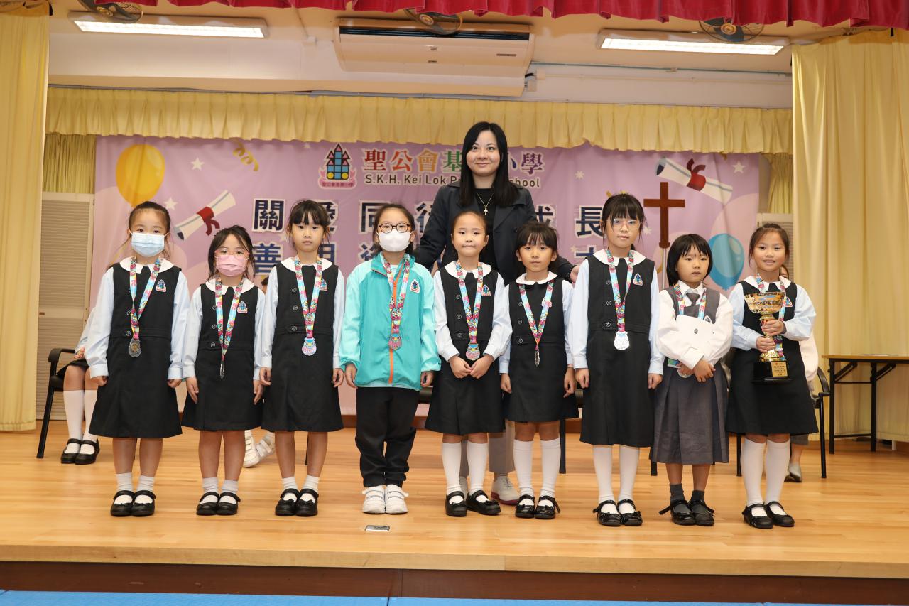九東區遊戲比賽_團體獎:女子初級組團體冠軍_女子初級組—單人跳繩殿軍_女子初級組—持棒穿圈亞軍_女子初級組—擲接豆袋冠軍_1A謝凱婷_1C陳芷涵_2A羅曼_2B陳雪盈+_2C楊雅晴_2C甘芷澄_2C黃佩姍_2D呂日晴_2D秦潔瑩